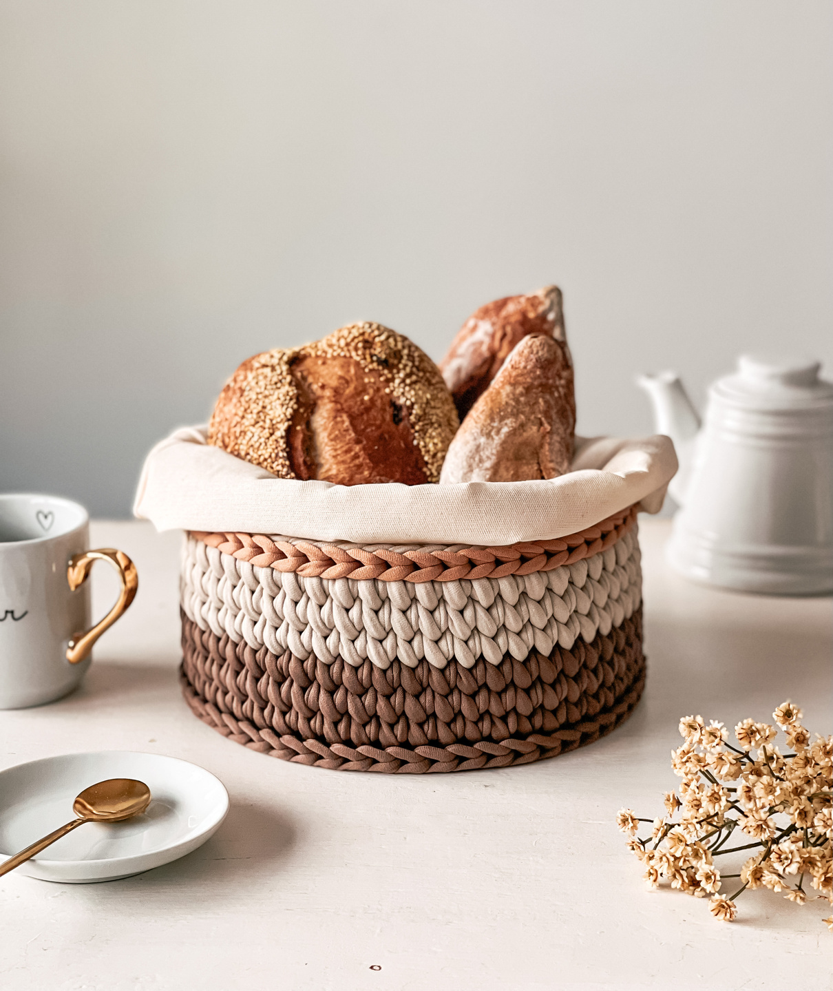 cesto de pão e bolsa em crochê